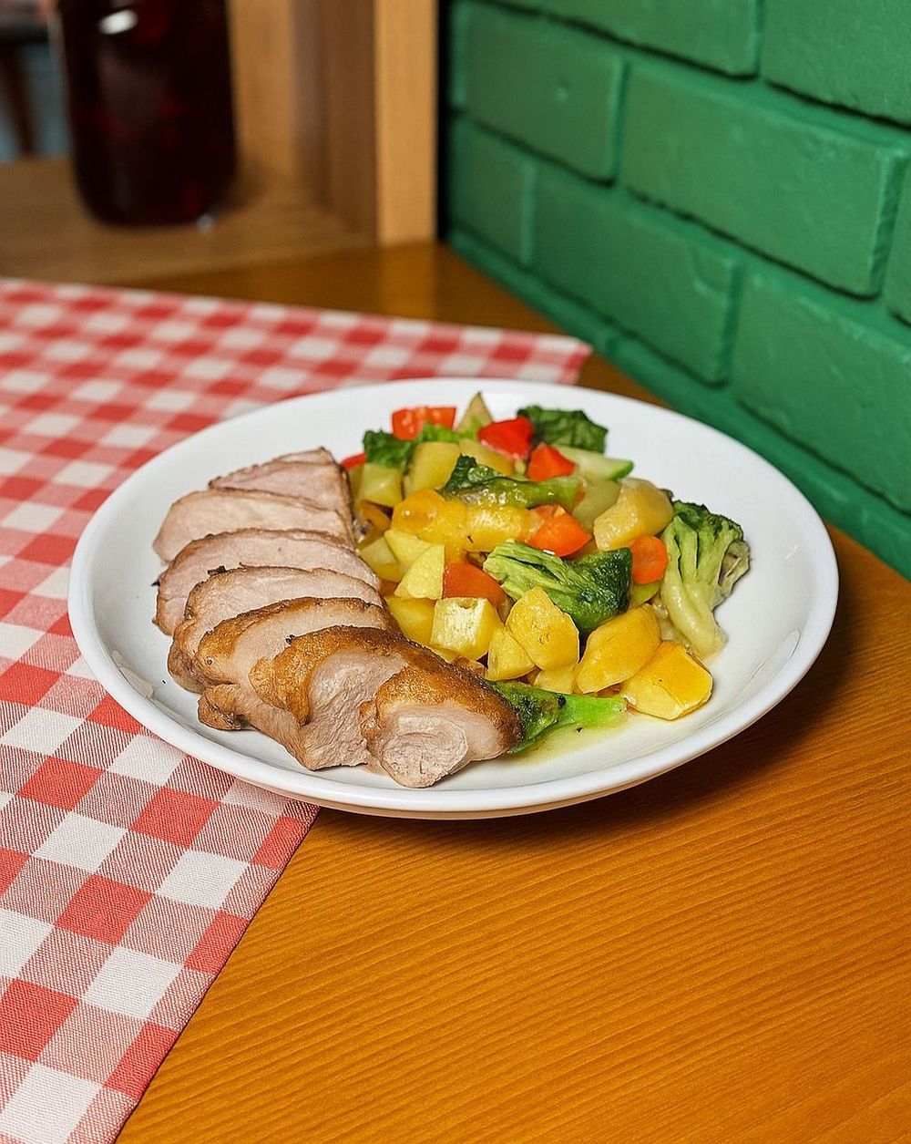 Утиная грудка с овощами — сочная утиная грудка с обжаренными овощами: брокколи, кабачком, болгарским перцем, картофелем и ароматным чесноком. Сытно, вкусно и насыщенно.